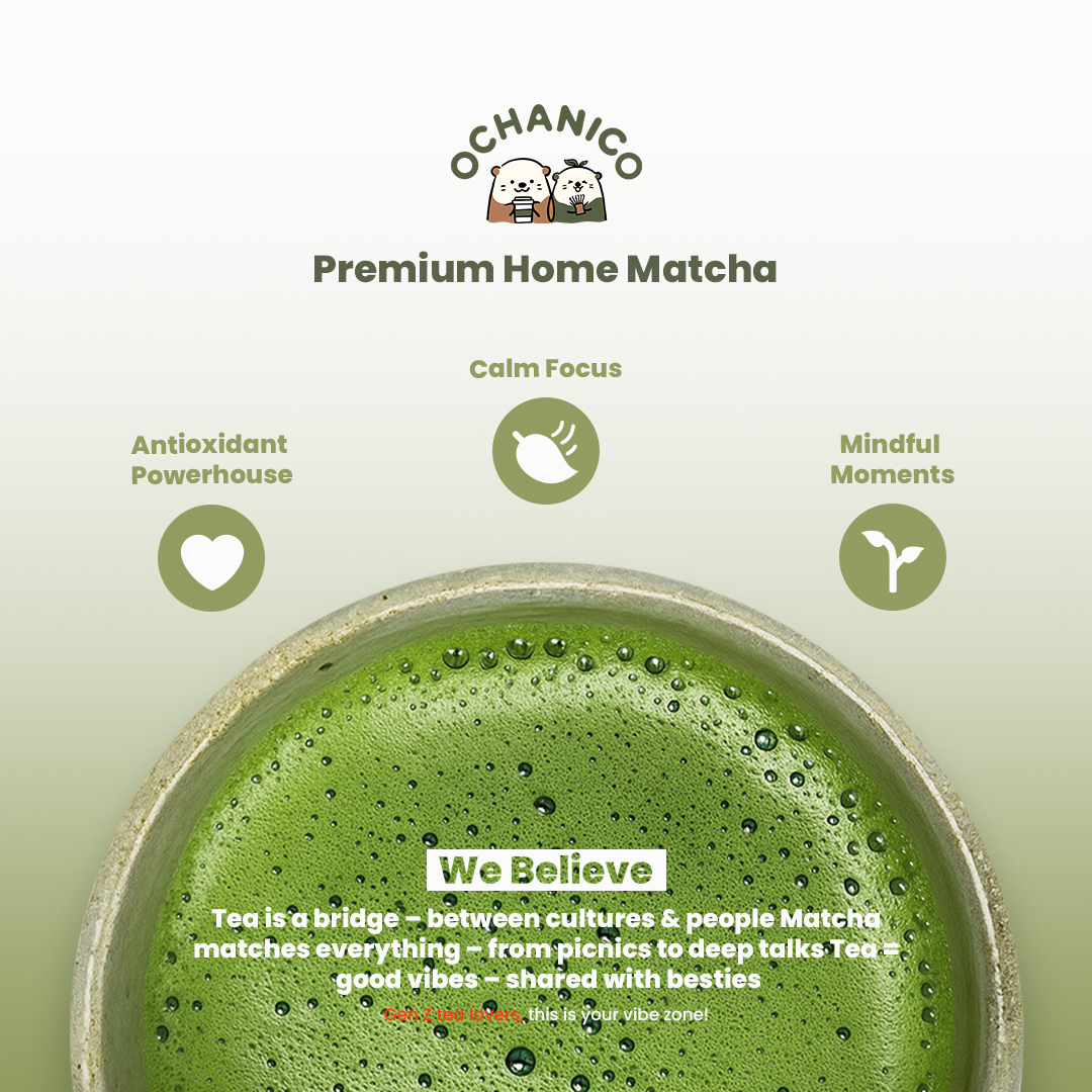 Ochanico Evergreen Classic is a versatile blend crafted for your daily rituals. With a smooth, balanced taste and a hint of natural sweetness, it’s perfect for lattes, smoothies, or traditional whisking. Freshly sealed to preserve its vibrant green color and nutritional benefits.